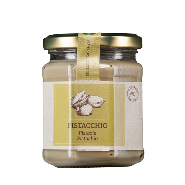 Questa crema dolce spalmabile al pistacchio viene prodotta utilizzando pasta pura di soli pistacchi italiani, senza coloranti, aromi ed additivi in genere.
